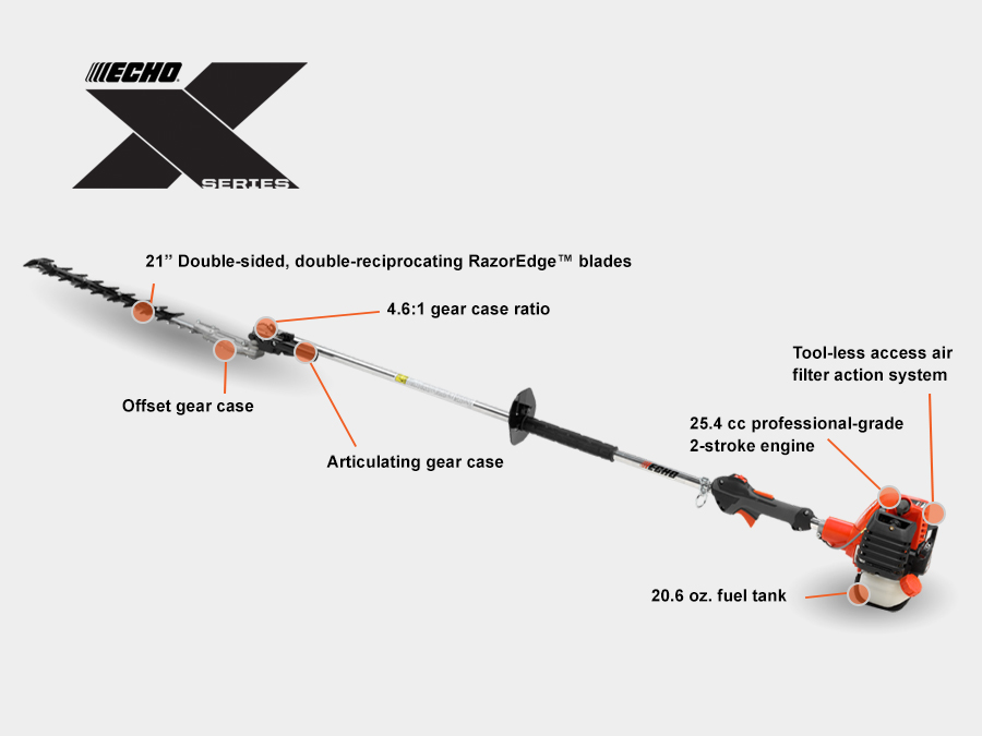 - Articulating gear case allows 10 blade adjustments with a total range of 135 degrees
