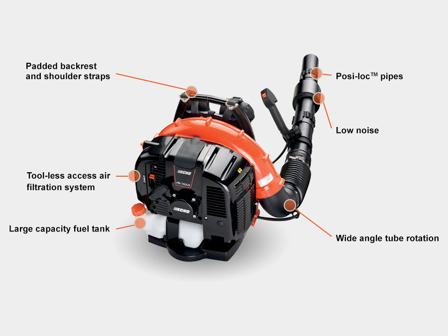The most powerful low-noise blower on the market. The PB-760LNT backpack blower with tube-mounted throttle emits only 65 decibels while producing 535 CFM at 214 MPH. With its blend of power, comfort, and quiet operation, it can help pros move mountains of leaves while still abiding by noise regulations.