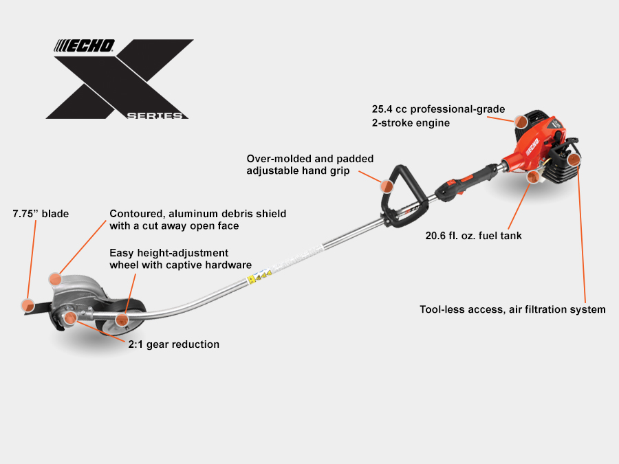 - 25.4 cc professional-grade, 2-stroke engine