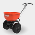 A professional, turf broadcast-style spreader. The RB-85 features 13 in. diameter tires and a tough, corrosion-resistant powder-coated steel frame to support an oversized 85 lb.-capacity hopper. A heavy-duty agitator breaks up clumps, while a foot-operated deflector shield keeps materials out of unwanted areas.
