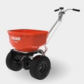 A professional, all-weather turf broadcast-style spreader. The RB-85S features 13 in. diameter tires and a stainless steel frame that stands up to any sort of weather and use condition to support an oversized 85 lb.-capacity hopper. A heavy-duty agitator breaks up clumps, while a foot-operated deflector shield keeps materials out of unwanted areas.