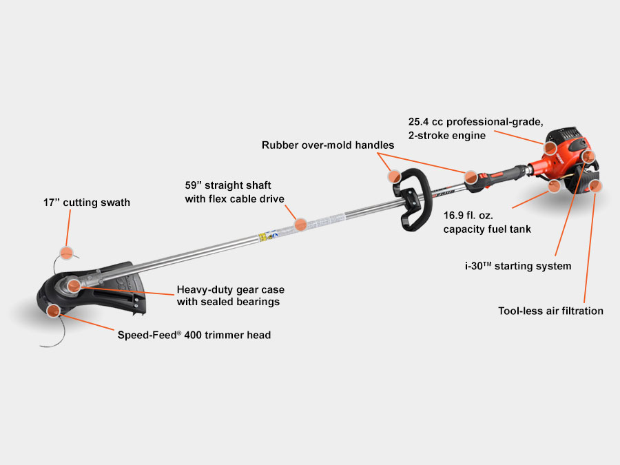 - 25.4 cc professional-grade, 2-stroke engine
