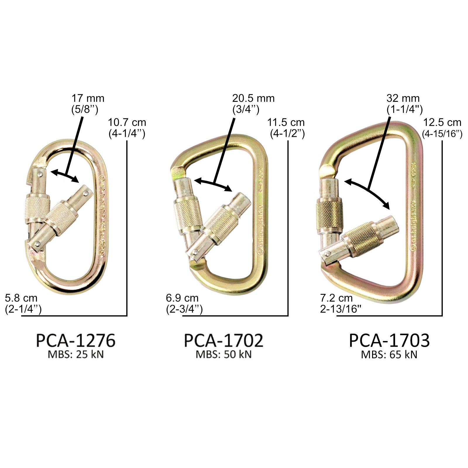 Please refer to the “Additional Information” tab to find out more about their minimum breaking strength (MBS) to help you select the correct carabiner and access the manual.
