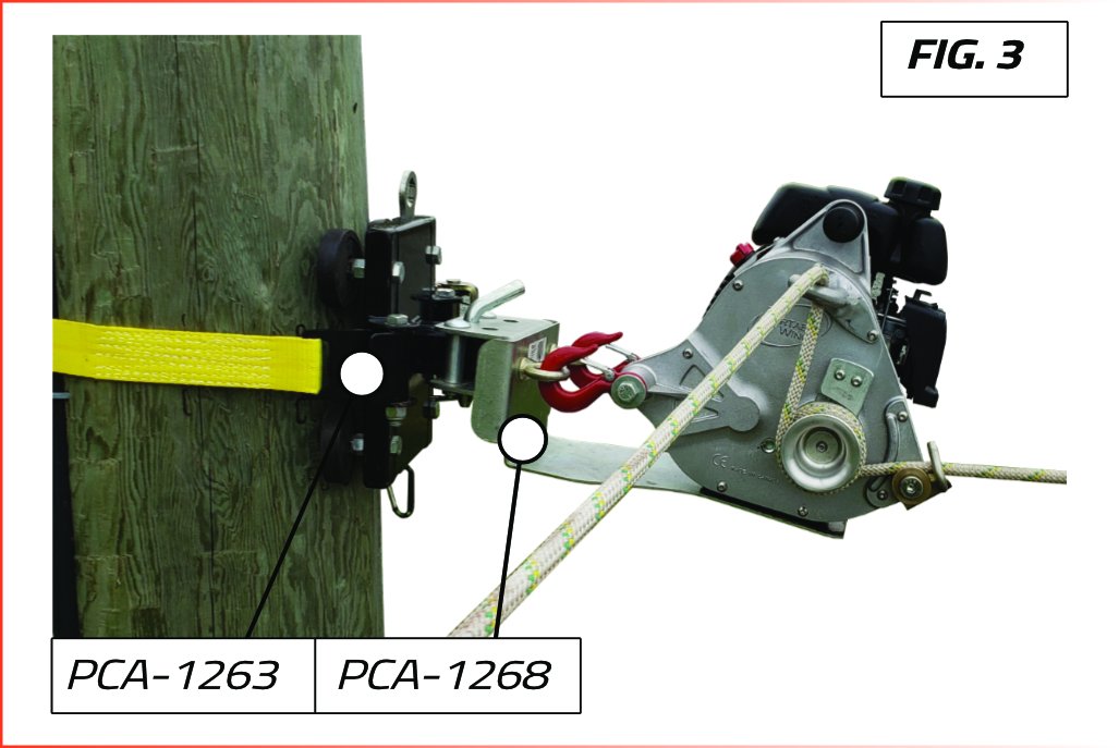 The anchoring system provided offers a secure method for mounting the winch onto trees or poles, enabling more comfortable working heights and facilitating extended use from a fixed position. It serves as the foundation for various accessory combinations (refer to figures above) and features four rubber pads that prevent slipping and protect tree bark.